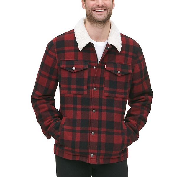 Levi S Mens Sherpa Trucker Jacket Red Tibetan Plaid Mens Sherpa Trucker Jacket Outfit Trucker Jacket